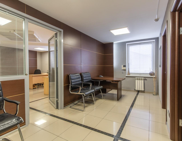 Офис состоит из 5 отдельных помещений. Их метраж: 32.9м2, 15.6м2, 11м2, 11.3м2, 8.1м2.