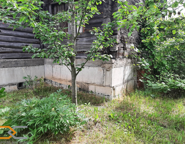 На участке расположен недостроенный двухэтажный бревенчатый (бревно 30 см) деревянный дом 7м х 6м, установленный на цокольный этаж. В цокольном этаже имеются 2 погреба. Цокольный этаж планировался под гараж для автомобиля. Перекрытия между домом и цокольным этажом - бетонные производственные плиты. Также есть хозпостройка из кирпича (3 уровня), где 1-ый уровень - под баню. Имеются стройматериалы- дерево, доски и кирпич - для завершения строительства дома.