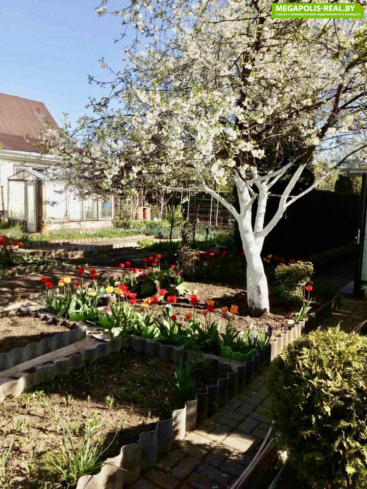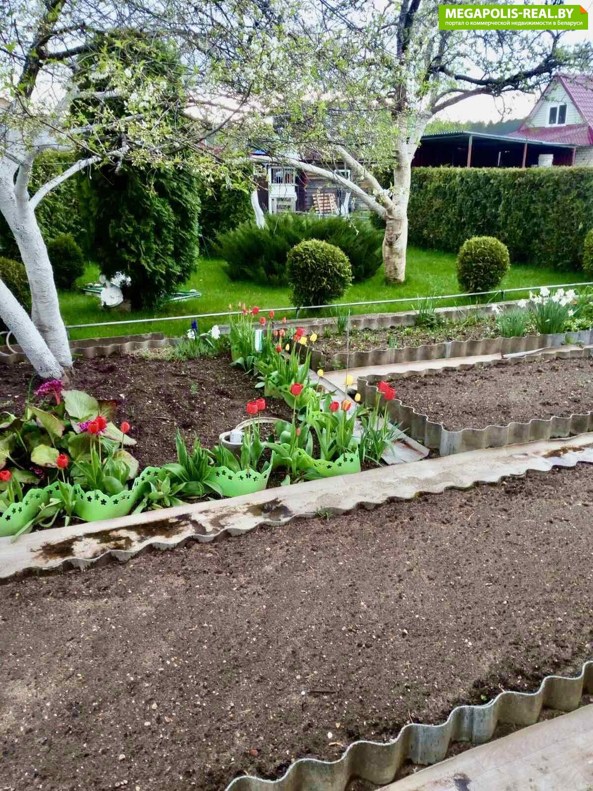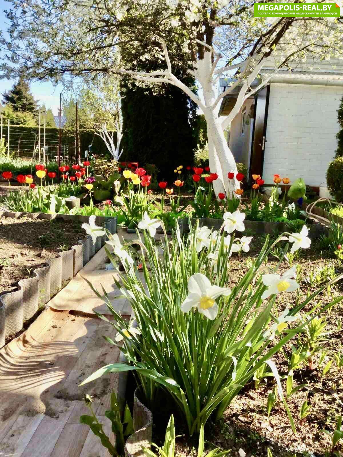 *На участке высажены различные виды цветов (лилии, тюльпаны, нарциссы и др.), также установлены декоративные статуэтки для дополнительного создания уюта!