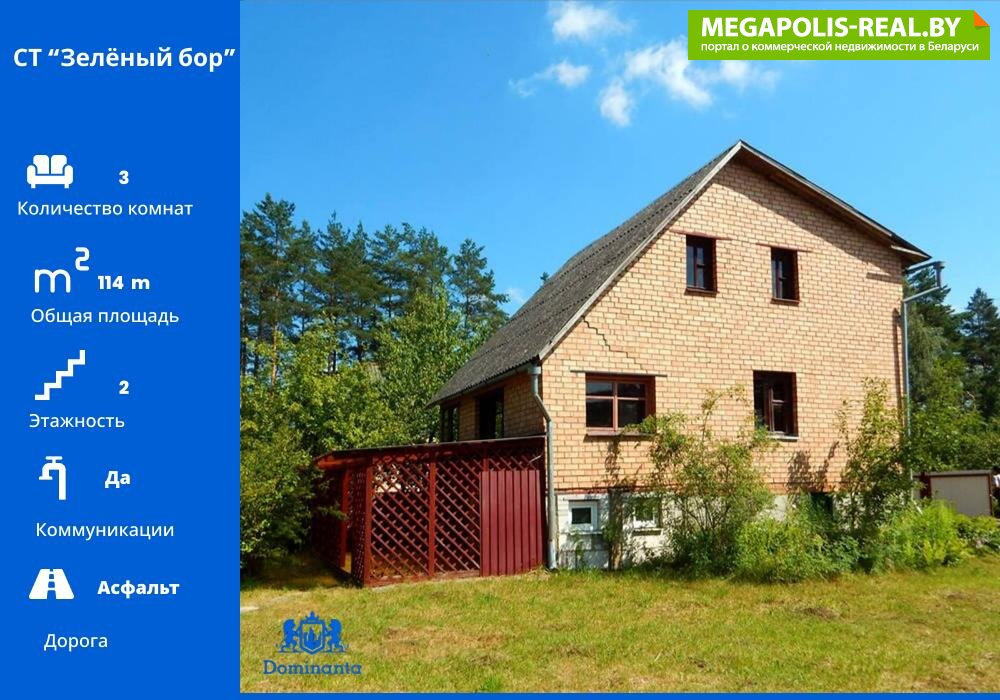 Продается дача в СТ недалеко от Минска в живописном месте. Дом выполнен из кирпича, в основе - деревянный сруб. Крыша шифер, перегородки и окна деревянные. Имеется отдельный вход со двора.В доме имеется место под кухню, санузел, душевая кабина, 2 раздельные спальни, гостинная с камином.Частично требует ремонта и дополнительного обустройства.Коммуникации: вода сезонная, электричество, газ подведен к дому, печное отопление, канализация - септик.Участок правильной квадратной формы, ровный, с насаждениями, огорожен со всех сторон.На участке имеется гараж, газон, беседка, летний душ, обустроенное барбекю.Хорошие подъездные пути. Остановка - 200 метров, рядом лес, река. В летний период есть магазин, работает доставка.