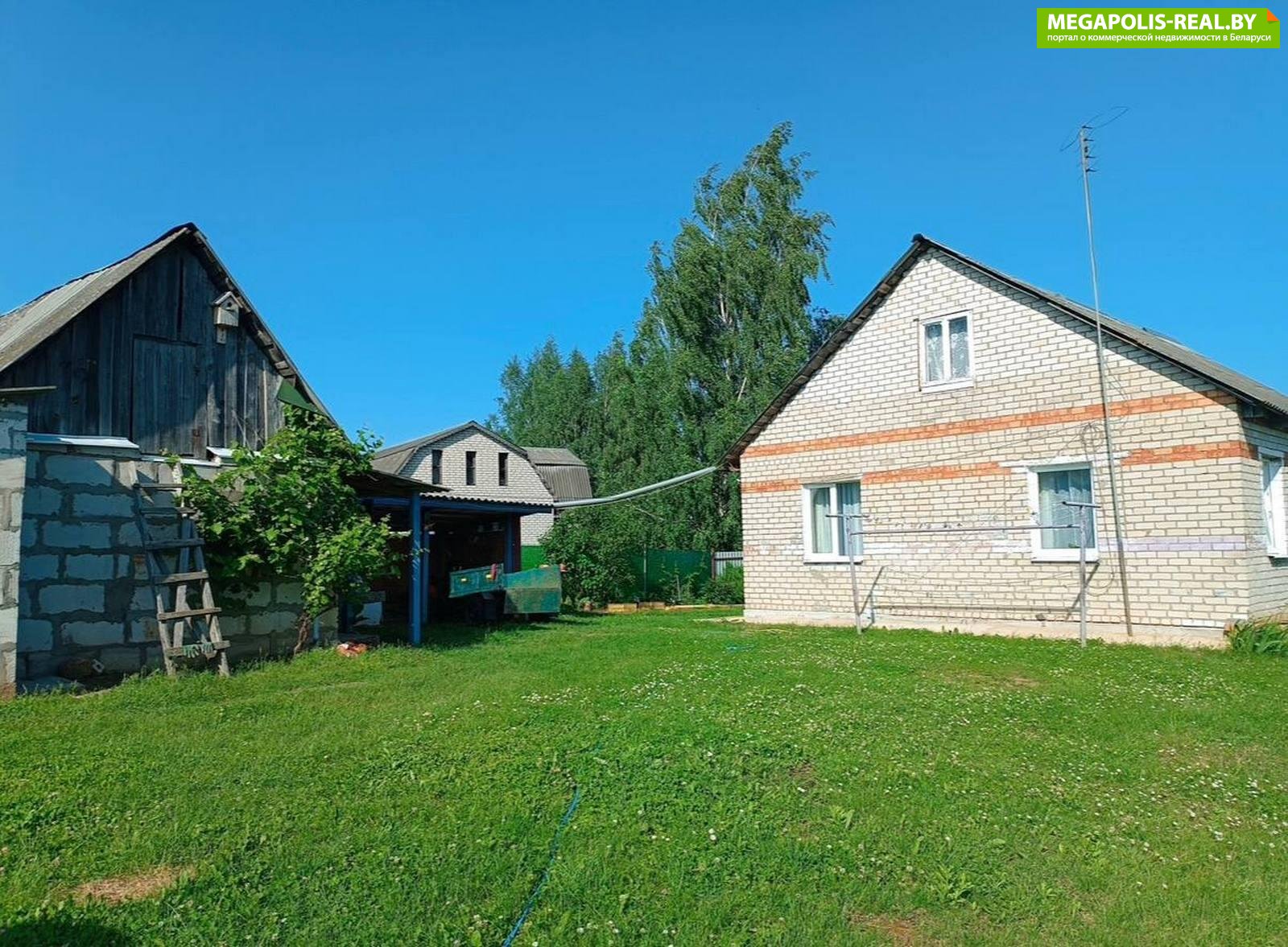 Дом (общ. пл. 107 кв. м.) построен из газосиликатных блоков, облицован белым кирпичом. Расположен на большом участке, размером 24,57 сотки (пожизненно наследуемое владение). Территория и площадь позволяет по форме раздел на 2 участка. Имеется 2 заезда-по улице и с обратной стороны.
