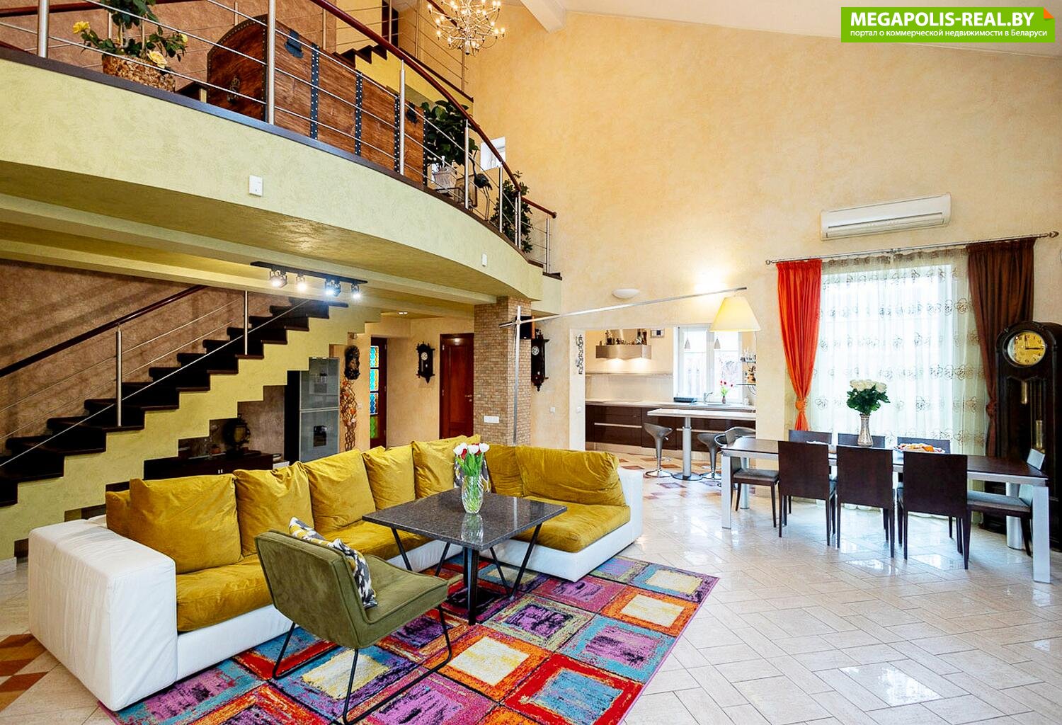 кухня-гостиная (более 50 м2) с обеденной зоной на 8 человек и кухней итальянского бренда "LUBE" с техникой "BOSCH", встроенным холодильником и индукционной плитой Whirlpool.