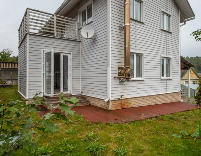Двухэтажный дом из бруса площадью 119,9 кв.м. В доме 4 комнаты, 3 санузла, кухня, оборудованная современной бытовой техникой.