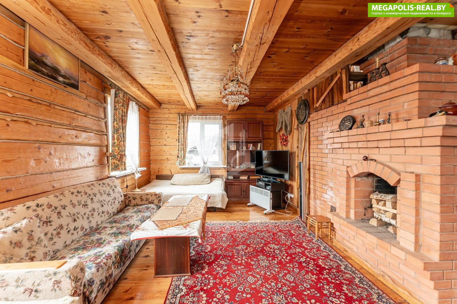 Деревянный сруб обложен керамическим кирпичём.
