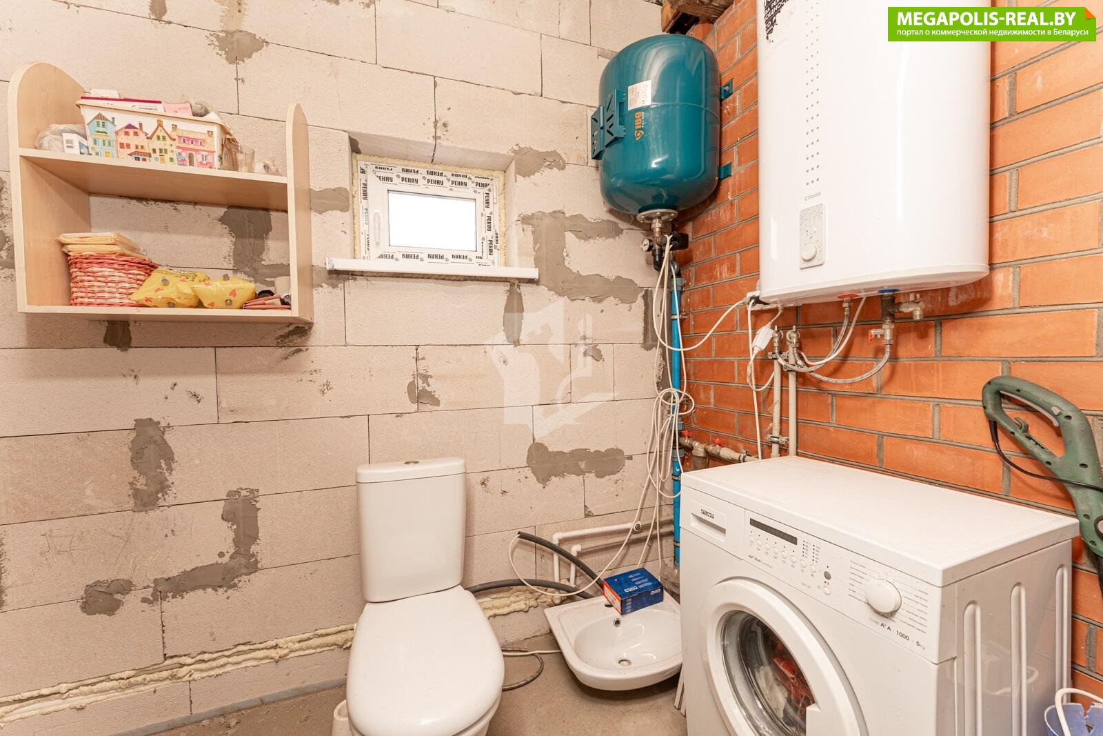Санузел довольно большой и расположен в доме, подключена стиральная машина.