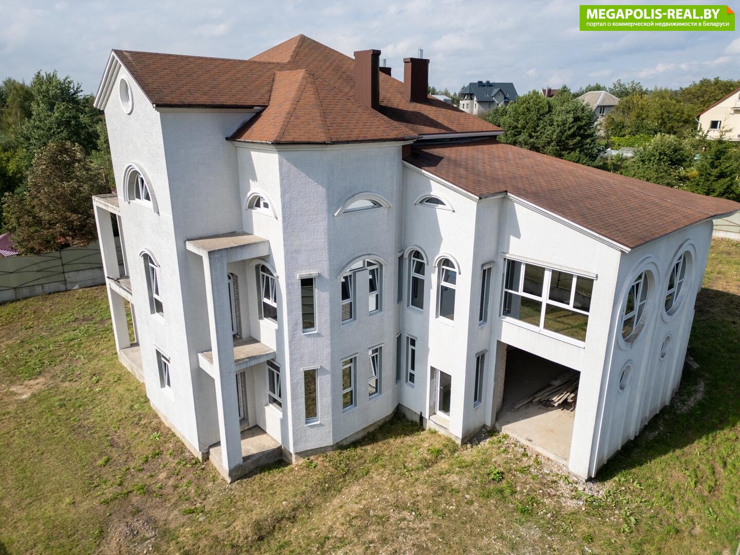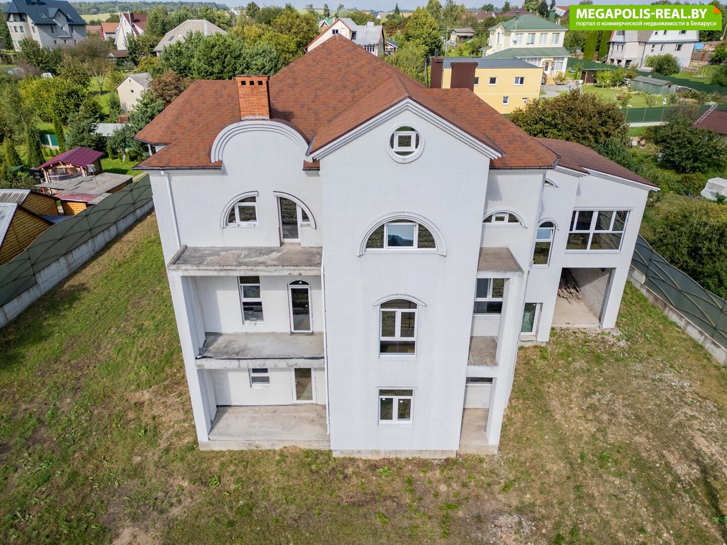 Перспективный коттедж в 9 км от Минска с земельным участком 15 соток в частной собственности.Участок без перепадов, ровной прямоугольной формы и только посмотрите на его расположение: до Минска 13 минут, подъездные пути с двух сторон, напротив-вид на бескрайние просторы лесополосы, полей и зарыбленный пруд.Всего в 5 км – агрогородок Озерцо, где расположено все, что необходимо для комфортного проживания и работы: детский сад, школа, супермаркет, крупный торговый центр DiaMond city, поликлиника и аптека, почта, пожарная часть, автозаправочная станция, строительный магазин и многое другое.Общий метраж дома 730 кв.м. Центральное водоснабжение и электричество подведено к дому, канализация -местная. Дом проектировался с возможностью разделения на три полноценный квартиры с балконами и независимыми друг от друга. Для долговечности и надежности использовался ленточный монолитный и заглубленный фундамент. Для прочности и надежности при возведении стен использовалась кладка толщиной в три силикатных кирпича. Теплоизоляция пеноплекс 50 мм. Крыша-гибкая черепица, преимущество которой высокая влагостойкость, плотное прилегание, бесшумность во время осадков, не ржавеет и не гниет, не выгорает на солнце. Обратите внимание на остекление всего здания- многокамерные профиль подлинного профиля rehau premium. Участок огорожен высоким массивным забором, есть два раздвижных заезда на территорию и две калитки для входа. Перед домом много свободного пространства для парковки автомобилей, пространство на самом участке позволяет организовать парковку и внутри участка. У дома многочисленные возможности использования: жилой дом, несколько квартир, офисное здание, офисное и производственное здание, размещения посольства, гостиницы, хостела.Приглашаем на просмотр фундаментального дома премиум класса с многочисленными возможностями использования.Лицензия: 02240/362 МЮ РБ, 31.07.2018