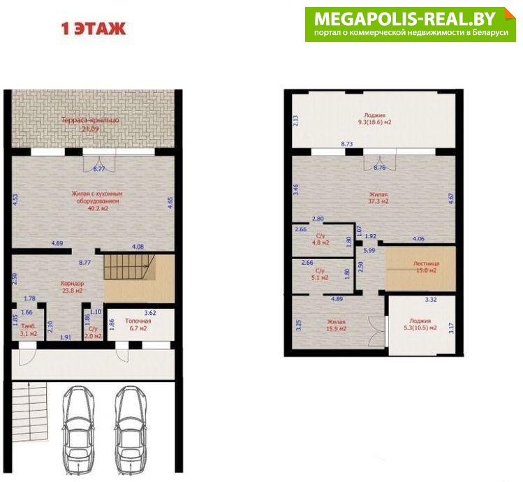 1 этаж: просторная кухня-гостиная с выходом на крытую террасу и свой участок; гардеробная, санузел.