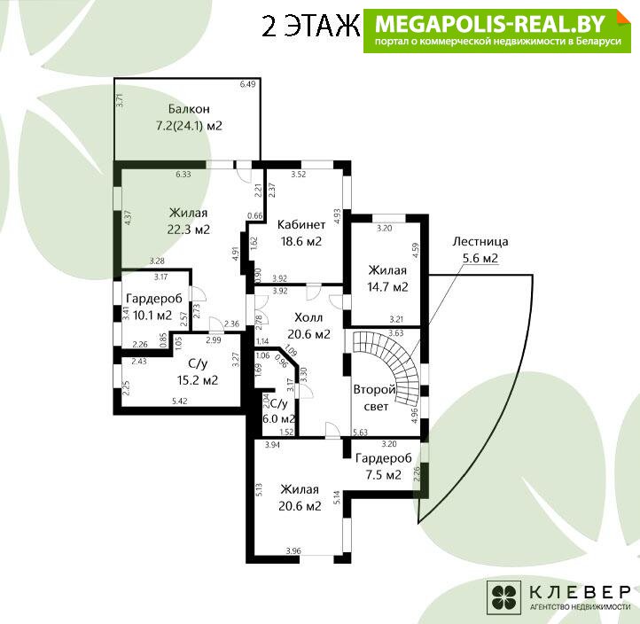 Общая площадь коттеджа - 535.3 м2, жилая площадь - 200.9 м2: