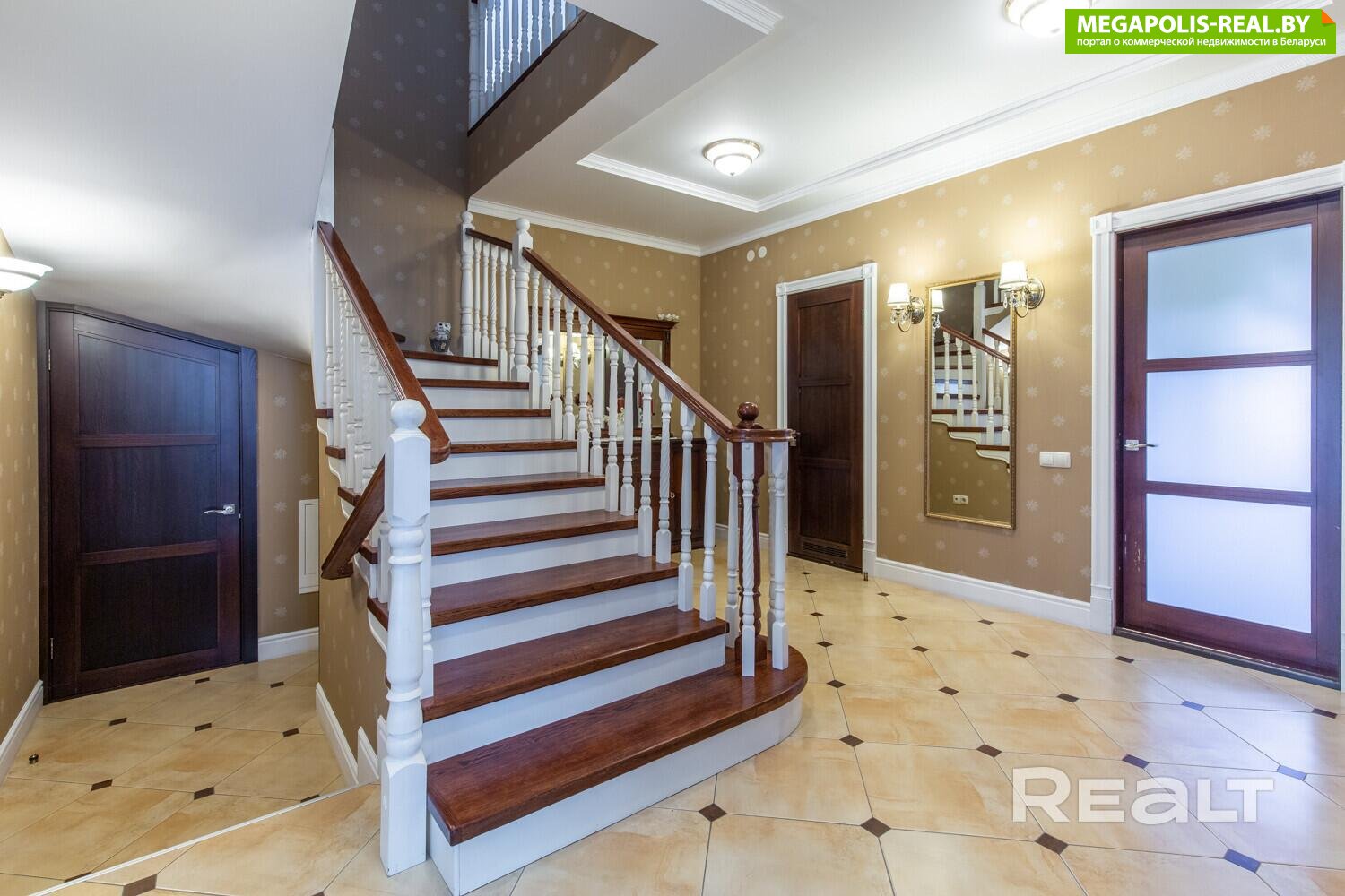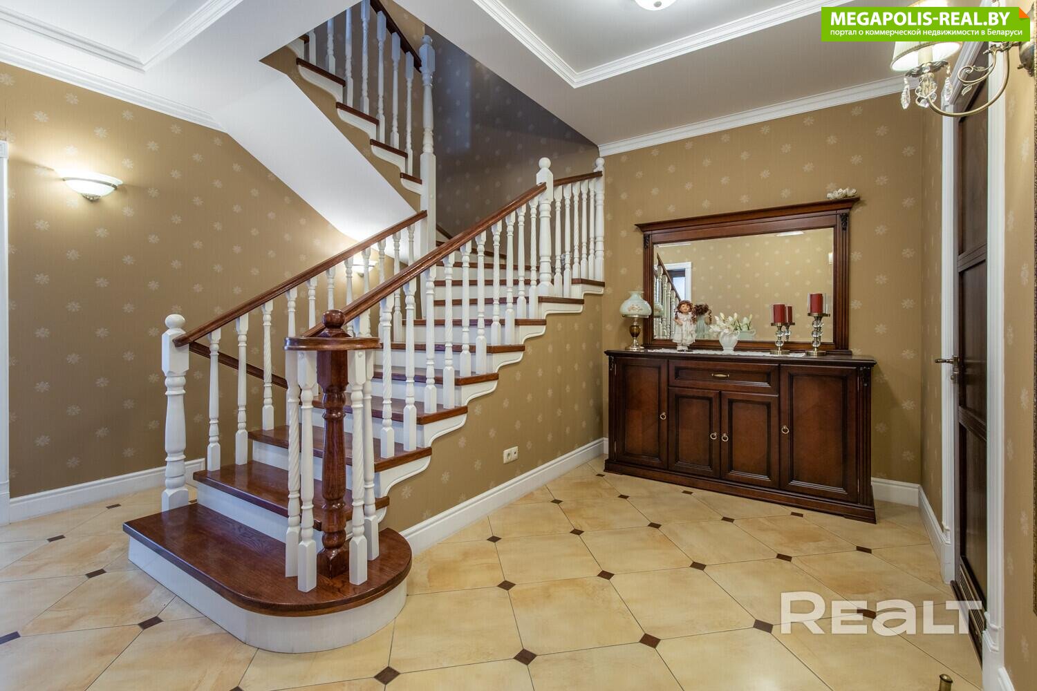 Кирпичный коттедж с термоизоляцией, межэтажные перекрытия железобетон - 306 м2: дубовый паркет, итальянская плитка, потолки до 4.6 м, дубовая лестница.
