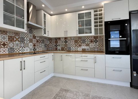 Кухонные шкафы: крашеные плиты МДФ с фурнитурой Blum, доводчики.