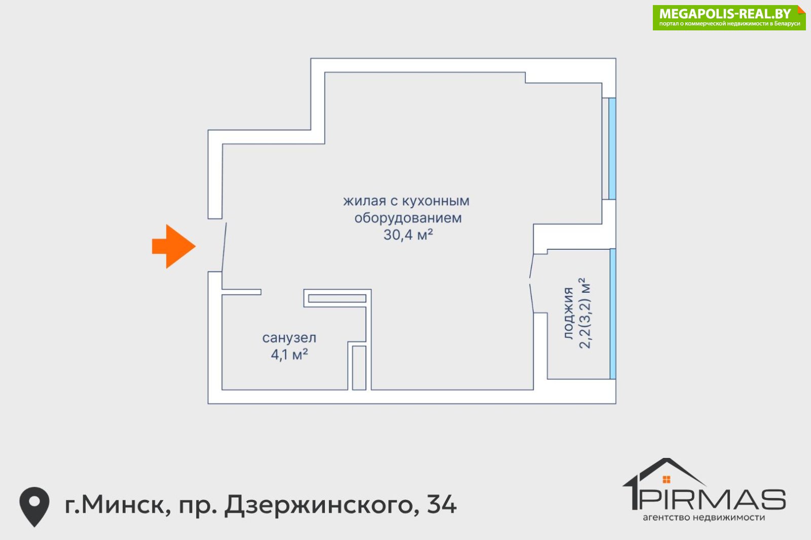 ►Жилая площадь — 30,4 кв.м