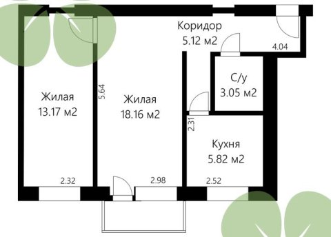 Общая площадь квартиры 31.6 м2Жилая площадь 17.6 м2Кухня 6.0 м2