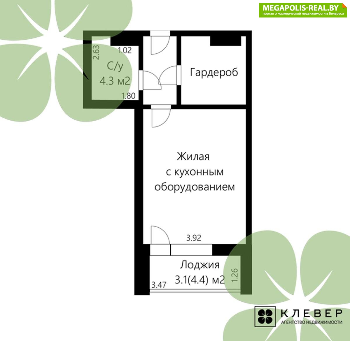 - Количество комнат: однокомнатная