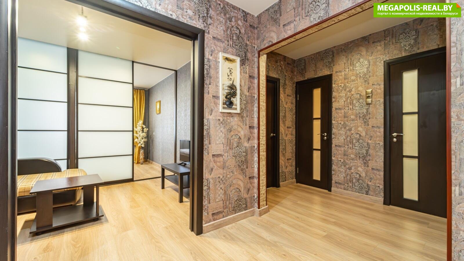 Хороший ремонт:• В коридоре большой встроенный шкаф – хорошо продуманная система хранения вещей.• 1.5 года назад выполнен косметический ремонт, в прихожей и комнате ламинат 33 класс, новые обои в темных тонах.• В квартире раздельный сан.узел. Стены и пол в ванной комнате и туалете облицованы плиткой.• Балкон застеклён, идеальное направление – окна на восток.