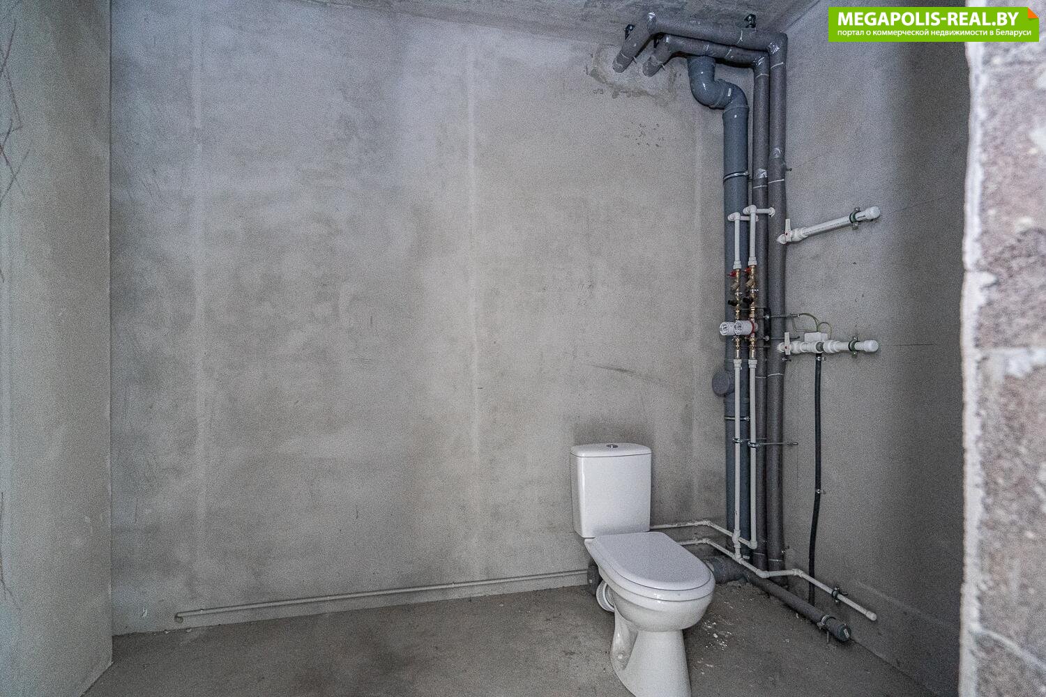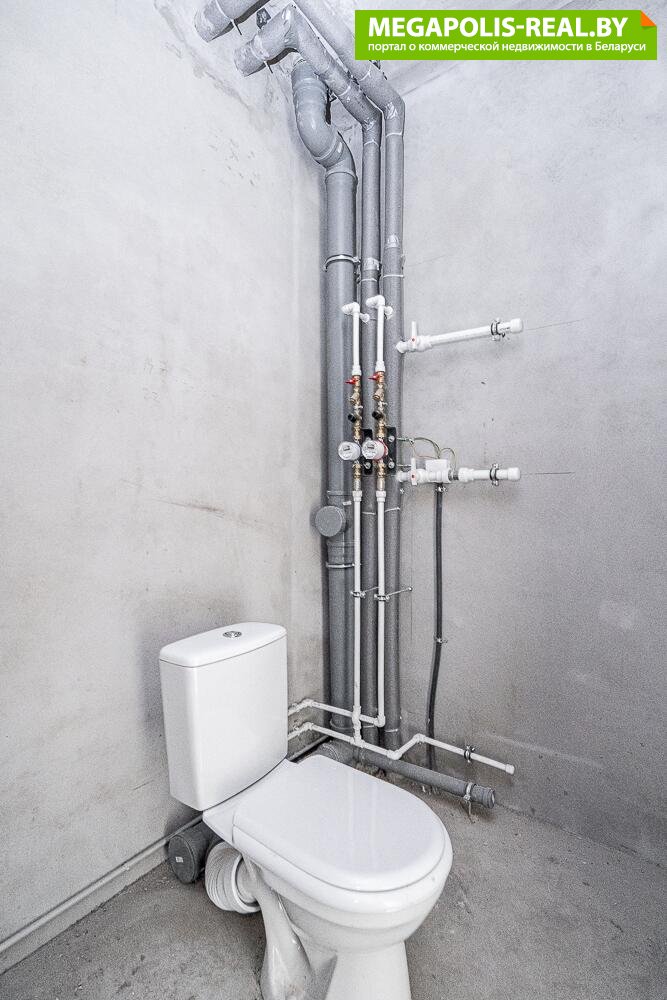 В квартире выполнена разводка электрики и сантехники, черновая штукатурка стен, установлен унитаз.