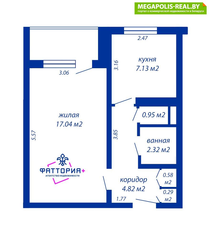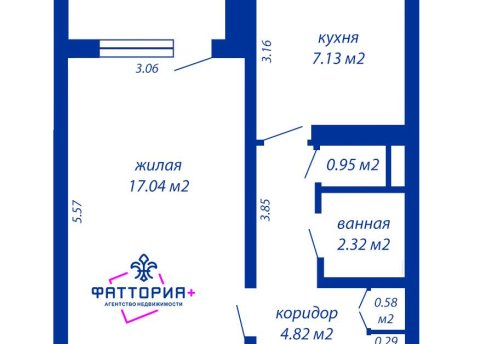Планировка: комната 17,4 м2 с выходом на большую застеклённую лоджию, кухня 7,2 м2, раздельный санузел и удобный шкаф в коридоре.