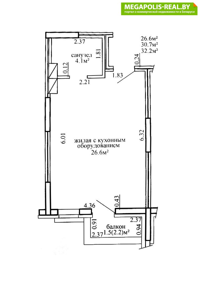 Площадь 32,2м2 по СНБ свободной планировки в квартале "Центральный парк", ЖК «Minsk World»