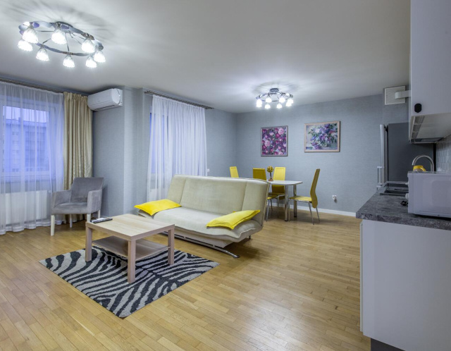 В квартире выполнен современный и качественный ремонт. На полу паркет, есть кондиционер, вся бытовая техника, посудомоечная, стиральная машина.