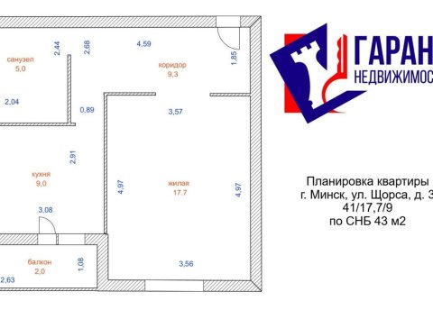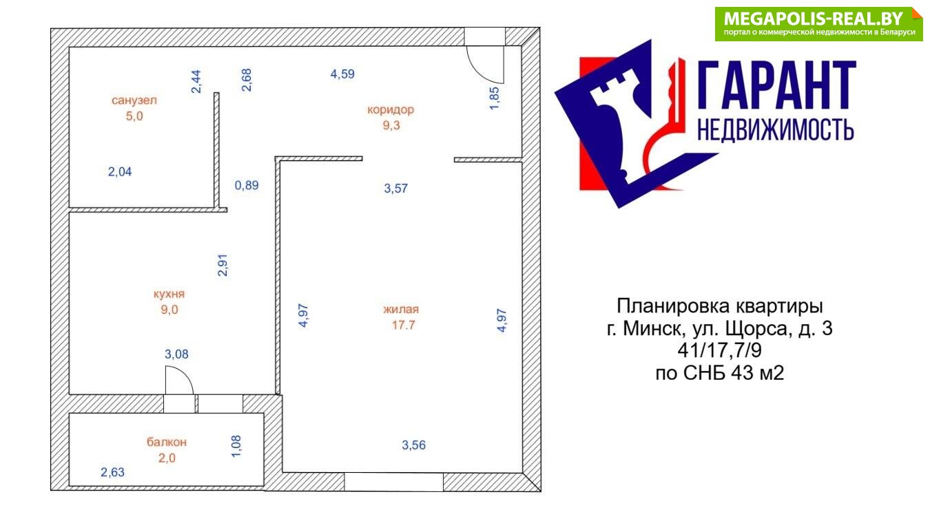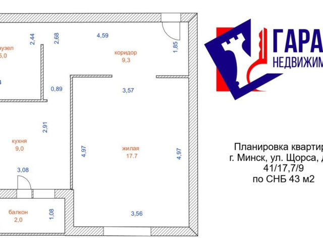 · Площадь по СНБ: 43 м2