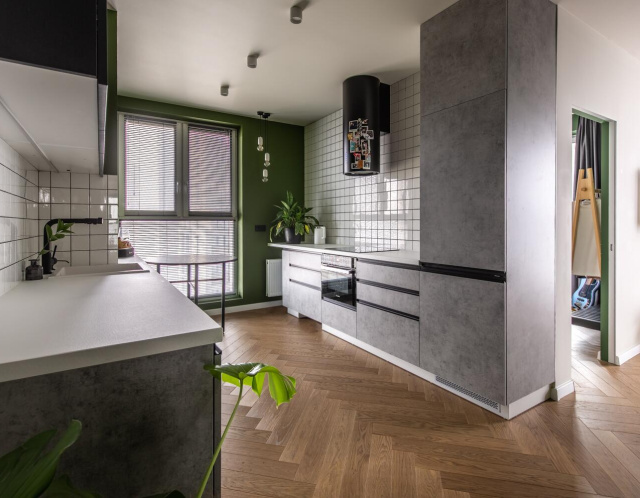 Большие панорамные окна в пол обеспечивают прекрасный обзор и наполняют пространство светом. Окна выходят во двор, что гарантирует спокойную атмосферу. Солнце в квартире бывает до полудня — вы будете просыпаться под мягкий солнечный свет, но при этом в квартире не будет жарко в летние дни.