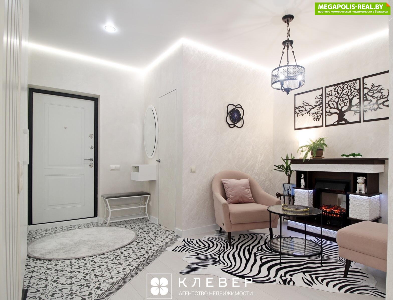 · Зона релакса с камином - уникальное решение в прихожей — просторная зона отдыха с камином. Это идеальное место для перезагрузки после рабочего дня. При необходимости можно оборудовать под кабинет.
