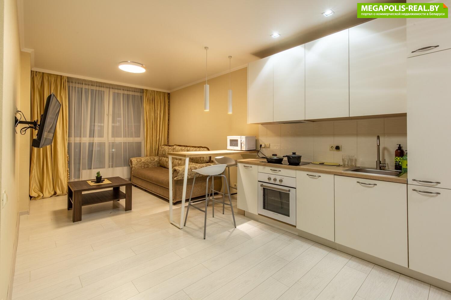 Просторная кухня-гостиная, выполненная в современном стиле, станет сердцем вашего дома. Здесь вы сможете собираться с друзьями и семьей, готовить вкусные блюда и наслаждаться общением. Панорамные окна наполняют пространство естественным светом и открывают потрясающий вид на городские пейзажи.