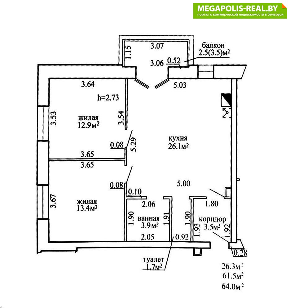 · Высокие потолки 2.7 м, новостройка.