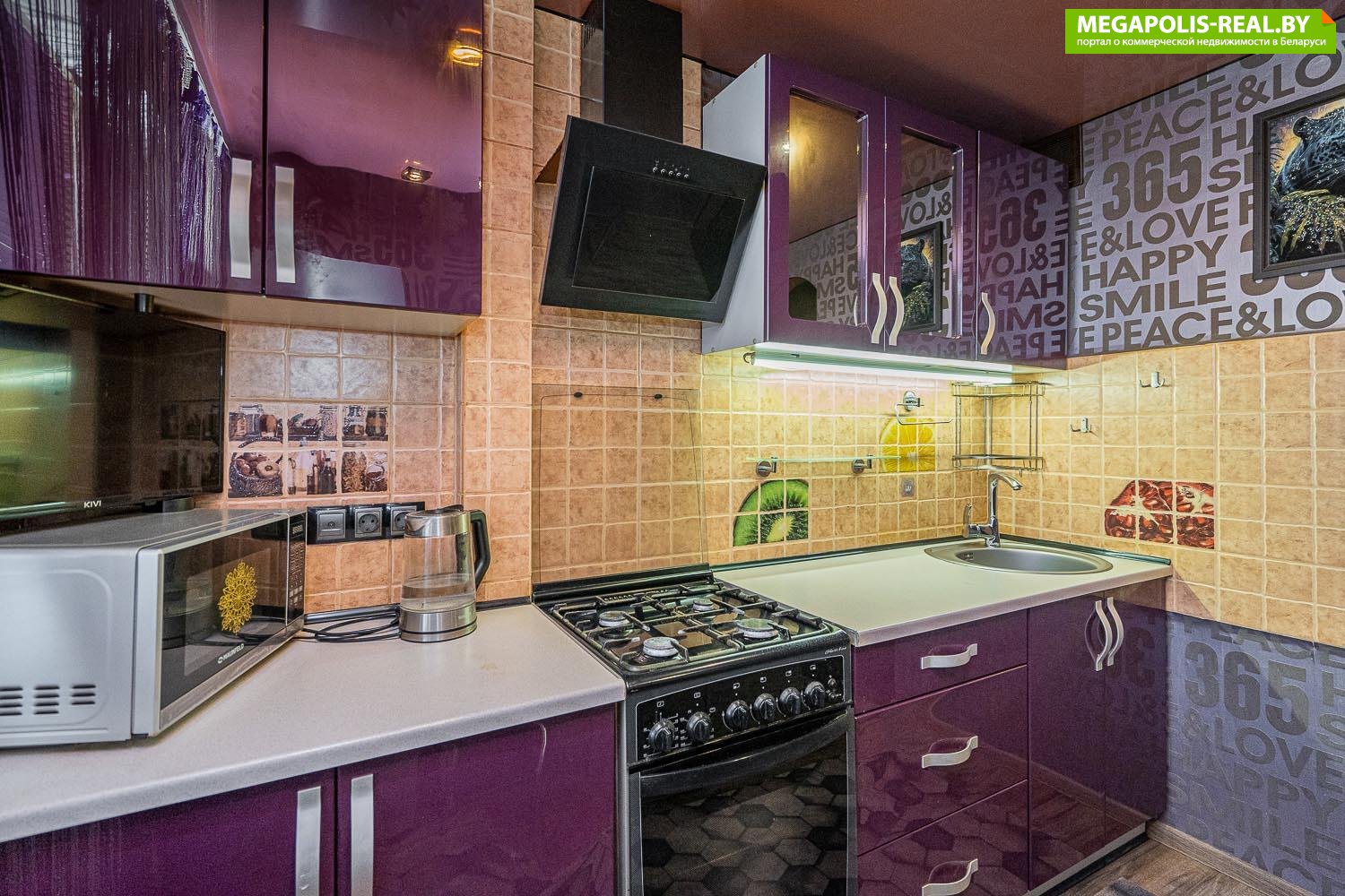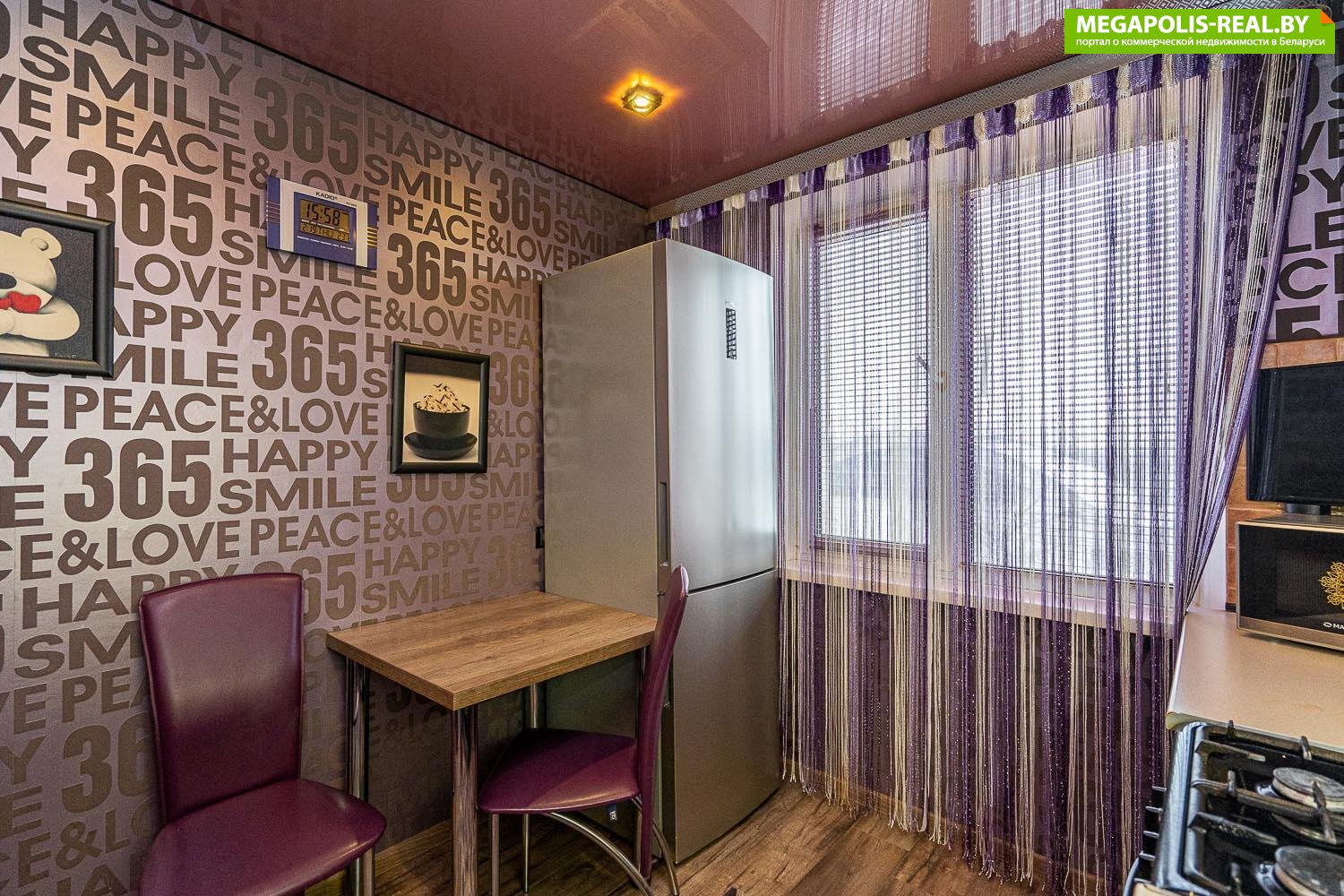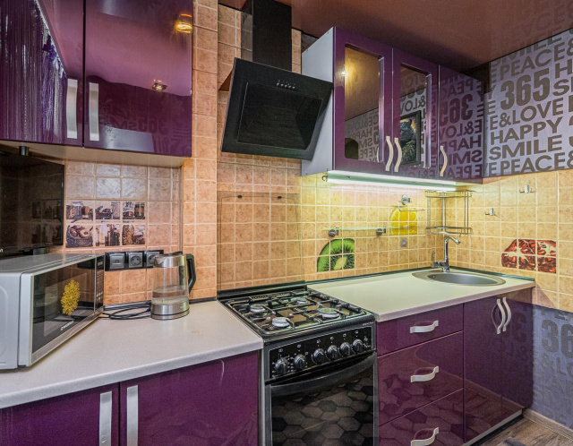 Потолки натяжные в комнатах и кухне.