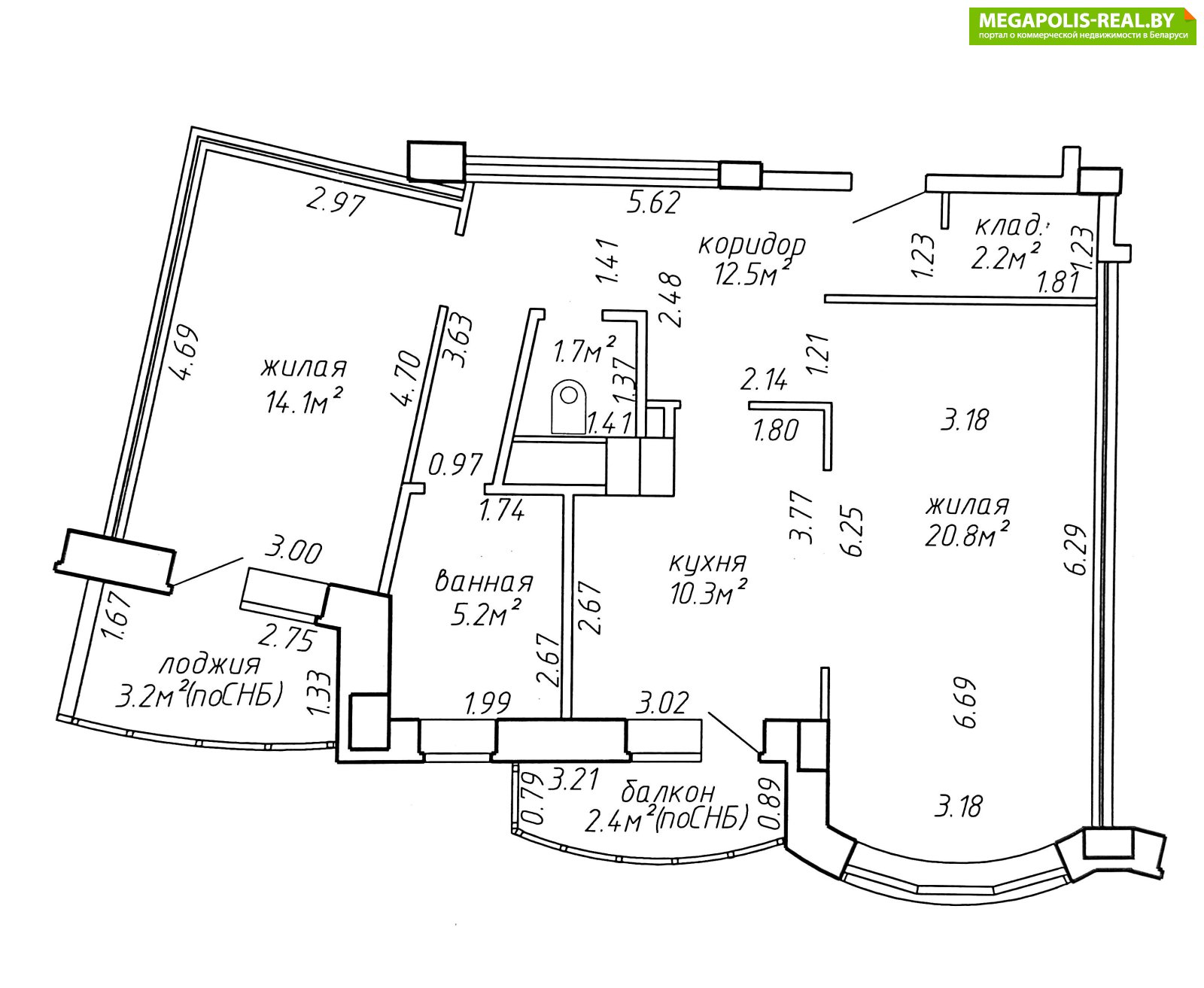 2-комнатная квартира с общей площадью 72.4 кв.м. (по СНБ) в 5 минутах пешком до метро Малиновка в ЖК «Мегаполис».