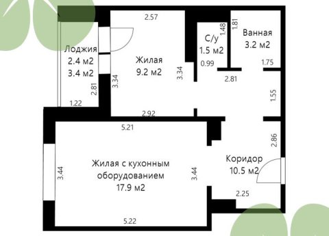 - Количество комнат: двухкомнатная