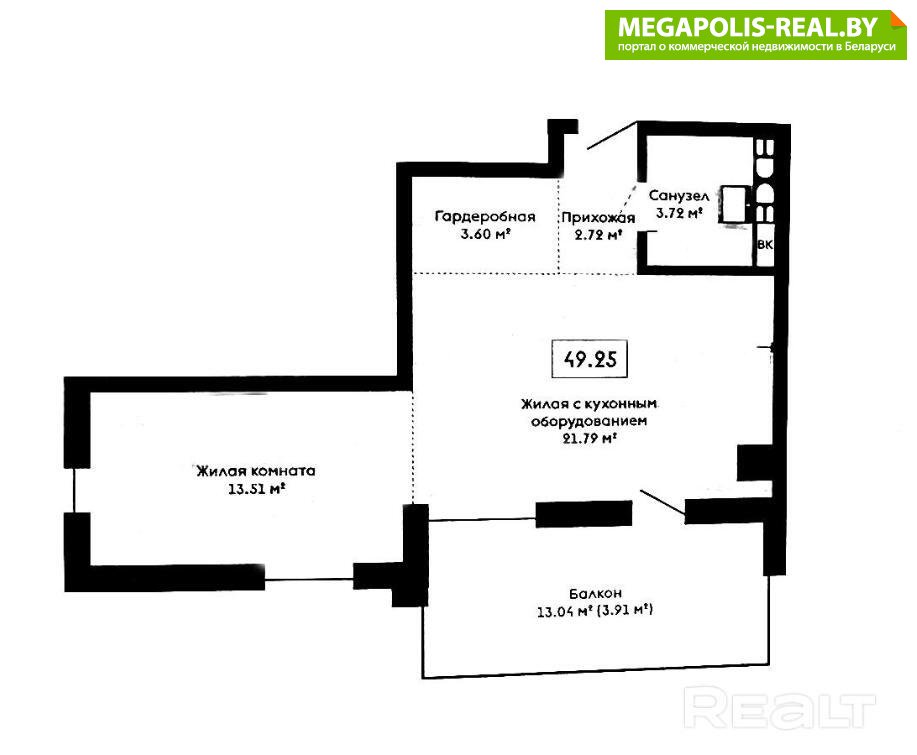 -Общая площадь по СНБ 49,25м2-Квартал «Горный Ручей»