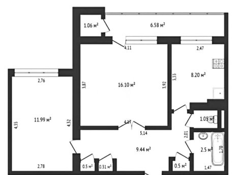 - Количество комнат: двухкомнатная