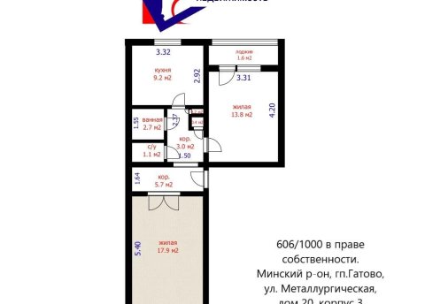 Продается квартира по адресу Металлургическая ул. д. 6, аг. Гатово