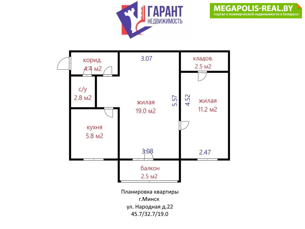 Продается квартира по адресу Народная ул. д. 22, г. Минск
