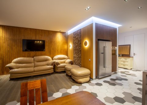 Ремонт выполнен по индивидуальному дизайн- проекту, выдержанному в стиле лофт, в пространстве воплощены самые смелые решения.