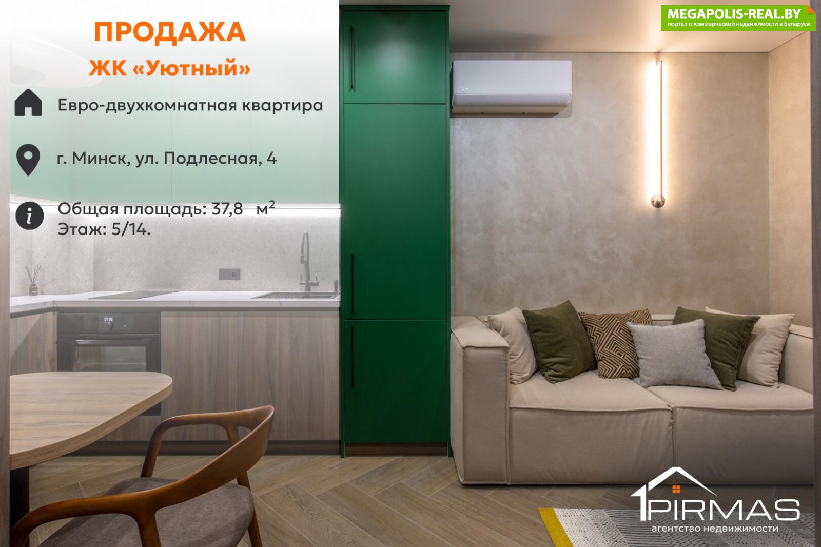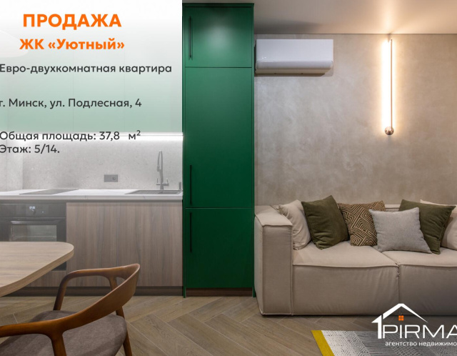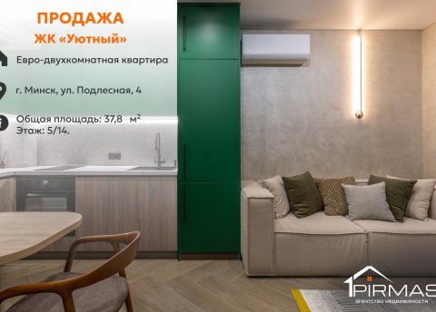 ⭕ Характеристики квартиры► Адрес: г. Минск, ул. Подлесная, 4► Формат: евродвушка► Этаж: 5 из 14► Общая площадь: 37,8 кв.м► Жилая площадь: 31,2 кв.м► Санузел: совмещённый► Год постройки дома: 2024