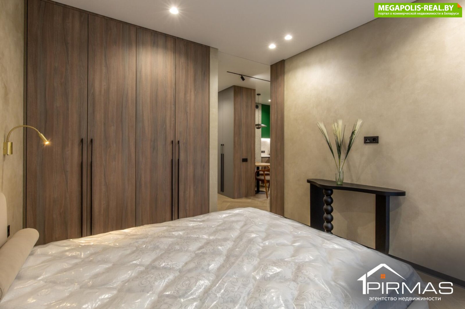 ⭕ Спальня Спальная зона — отдельное, приватное пространство. Большое окно наполняет комнату естественным светом, а спокойная цветовая палитра располагает к отдыху. В спальне установлен вместительный встроенный шкаф с лаконичными фасадами в тон отделки. Он полностью закрывает вопрос хранения одежды и при этом визуально не утяжеляет интерьер. Меблировка и освещение подобраны так, чтобы спальня ощущалась уютной и функциональной одновременно.