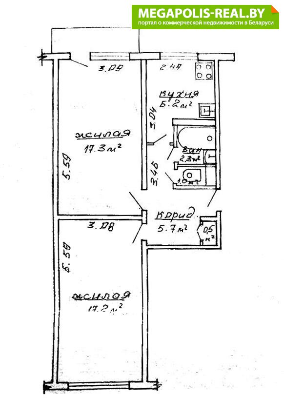 · Две большие изолированные комнаты (17.2 и 17.3 м2).