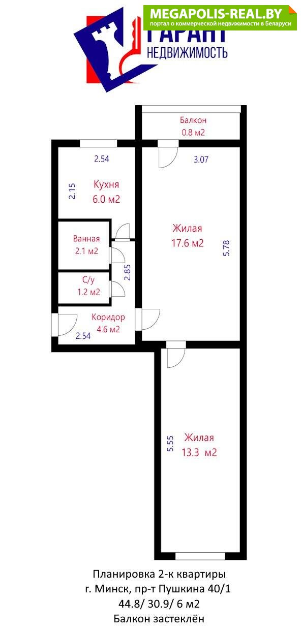 Продается квартира по адресу Пушкина просп. д. 40 к. 1, г. Минск
