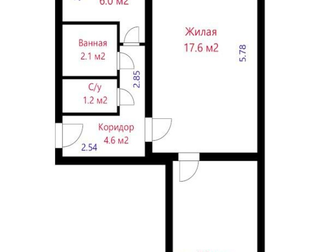 - Количество комнат: двухкомнатная