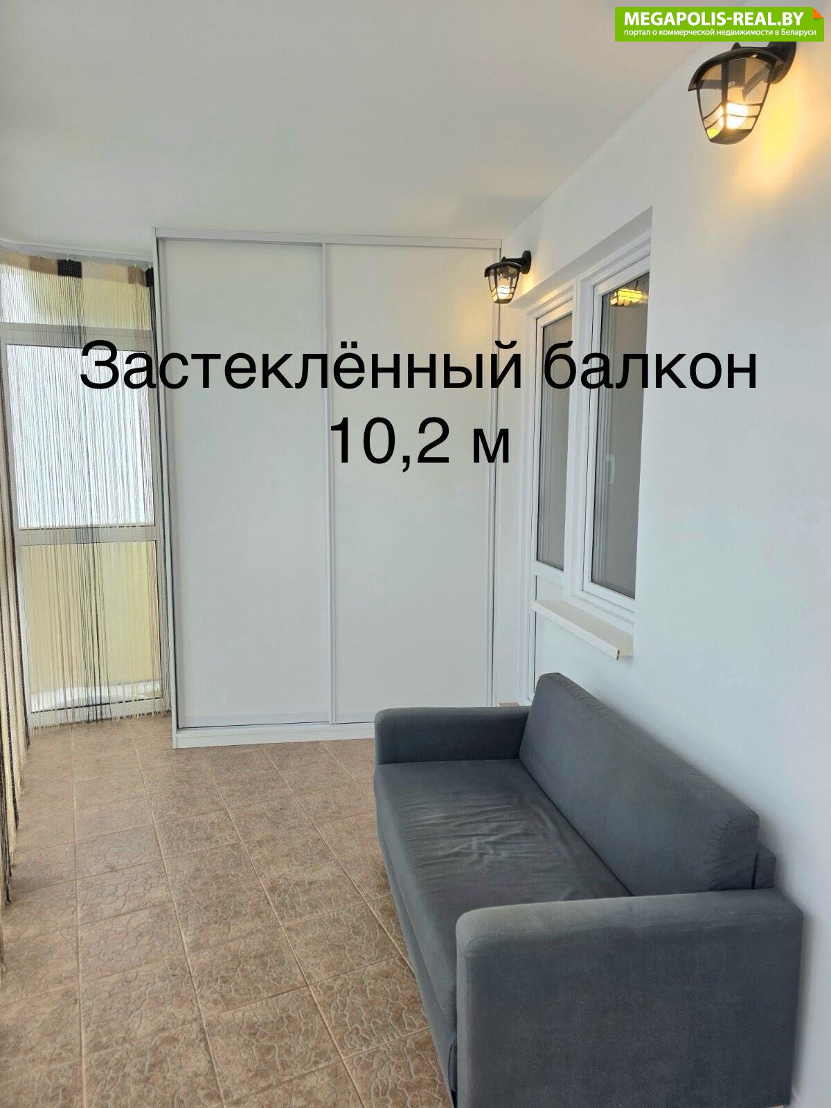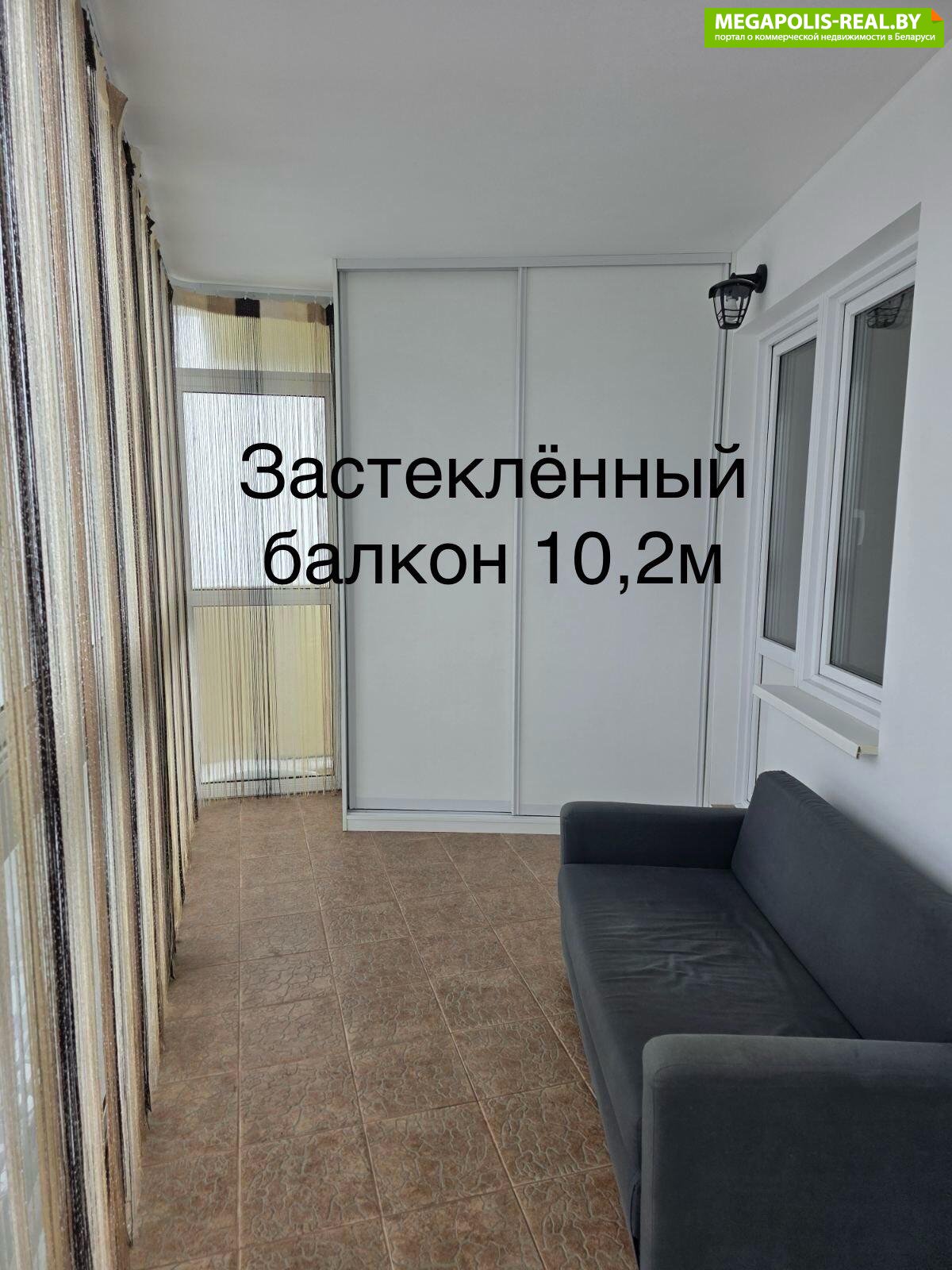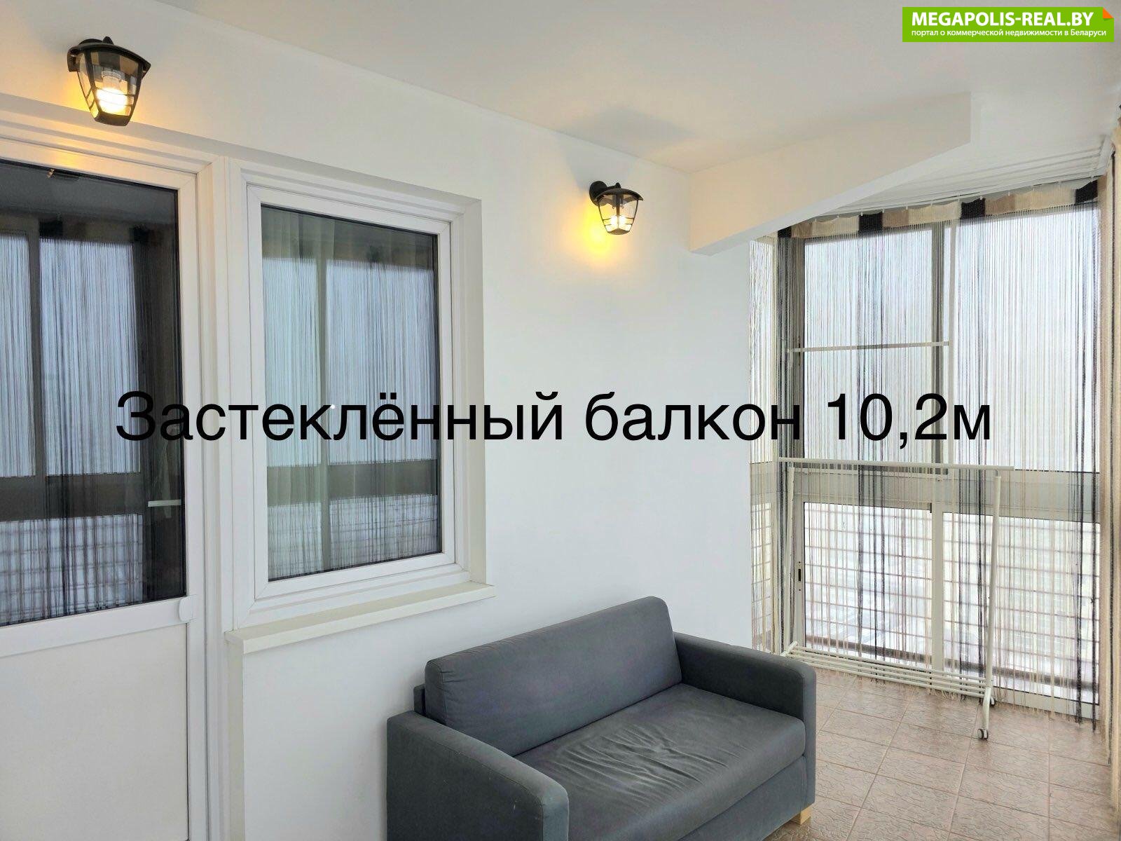 Второй балкон застеклен, 10,2 м2 - практически третья комната для релакса с панорамным видом на город. Третий маленький балкон не застеклен.