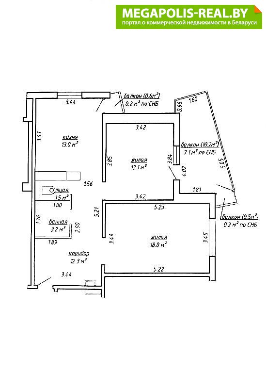 Метраж в рекламе 68,6 указан по СНБ.
