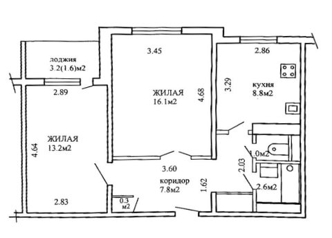 - Количество комнат: двухкомнатная