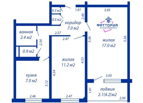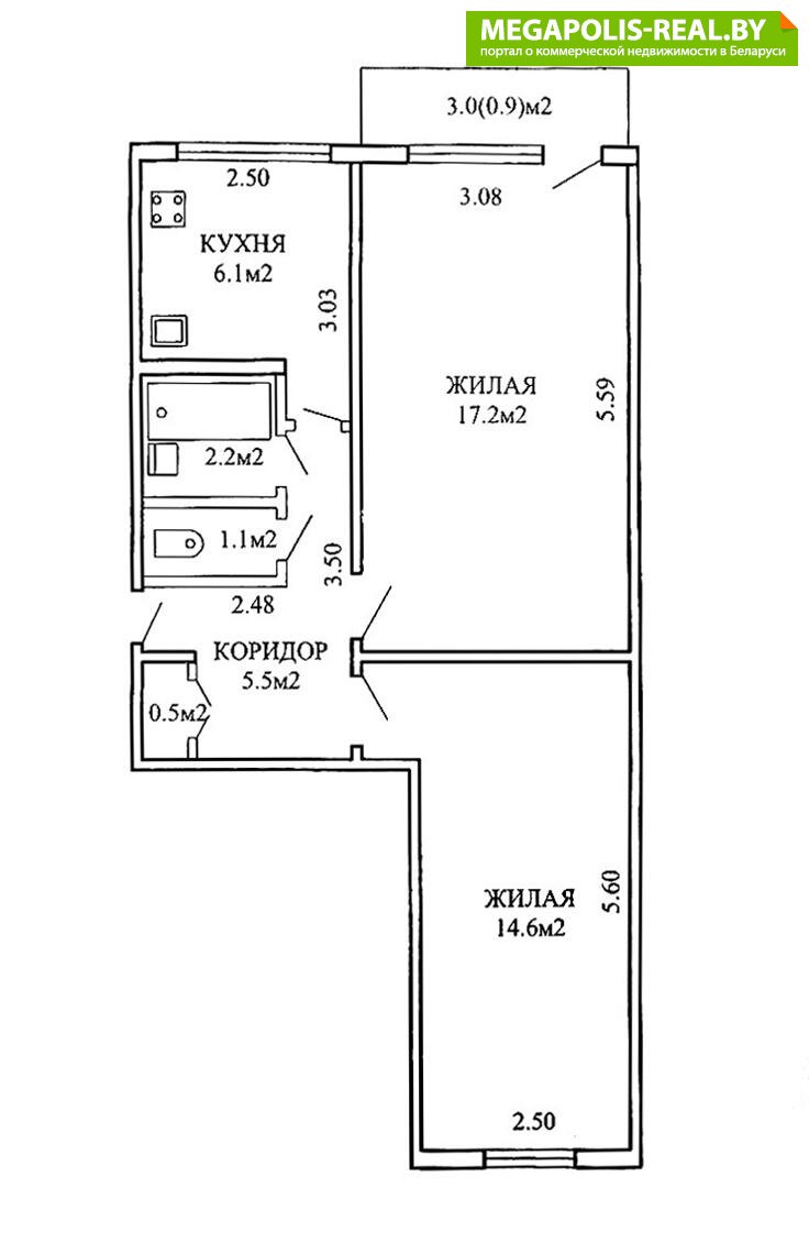 - Раздельные жилые комнаты (17,2м2 и 14,6м2)