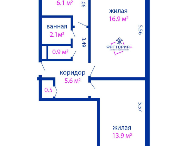 - Количество комнат: двухкомнатная