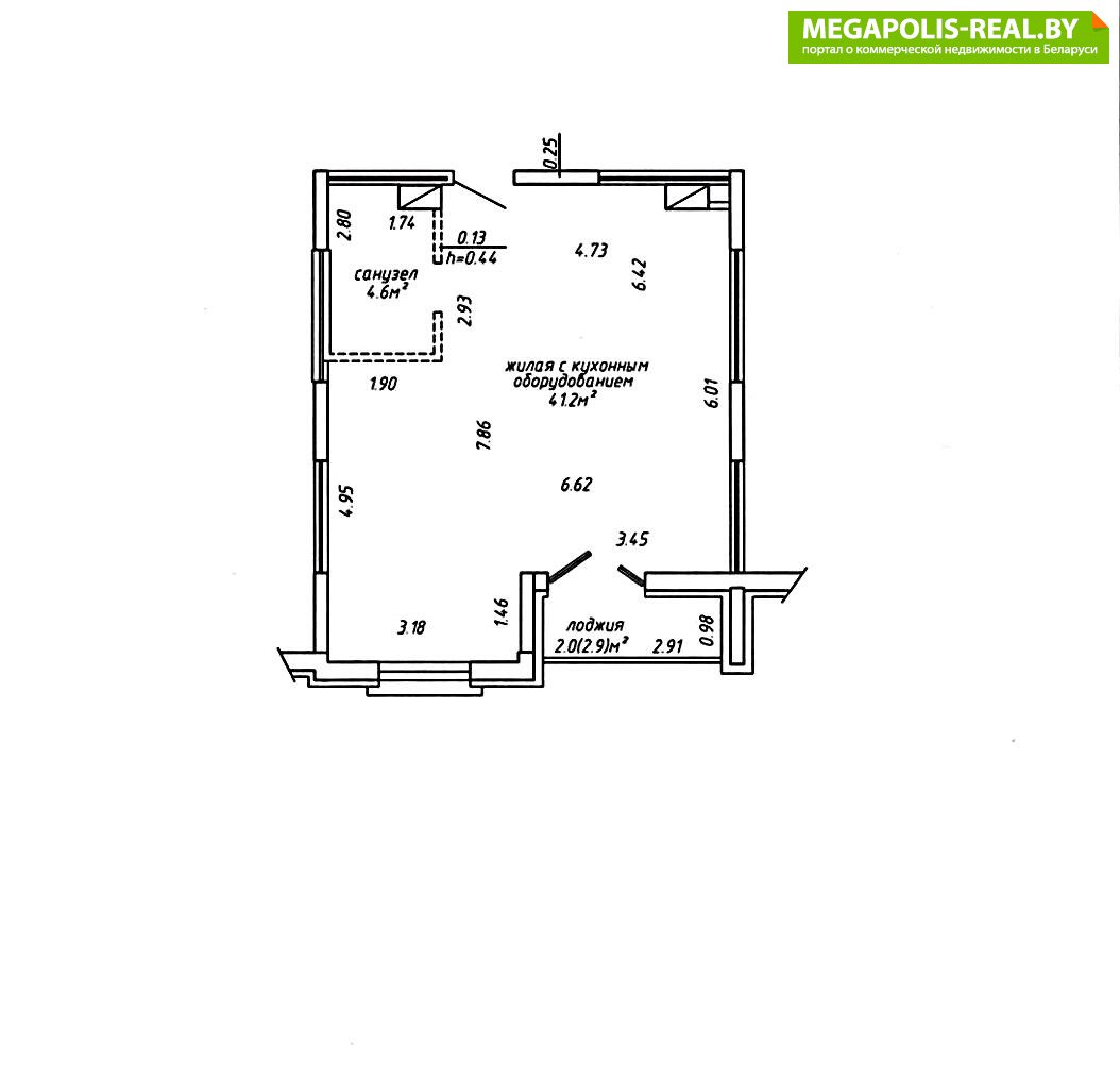 Общая площадь по СНБ 47,8 кв.м. Общая площадь 45,8 кв.м. Высота потолка