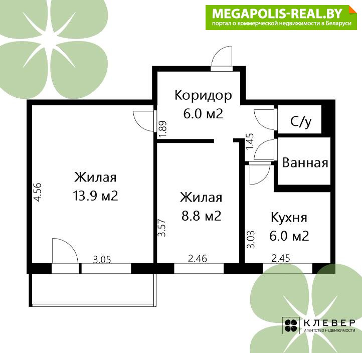 - Количество комнат: двухкомнатная