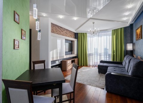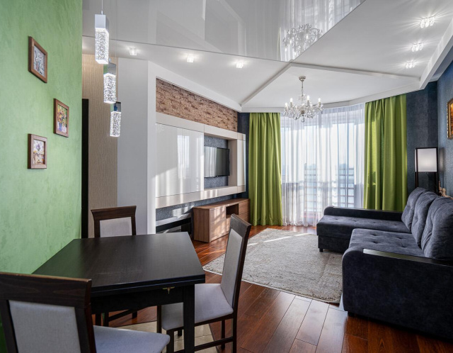 Элегантность и качество: Квартира выполнена в классическом стиле с использованием только высококачественных материалов, создавая атмосферу уюта и изысканности.