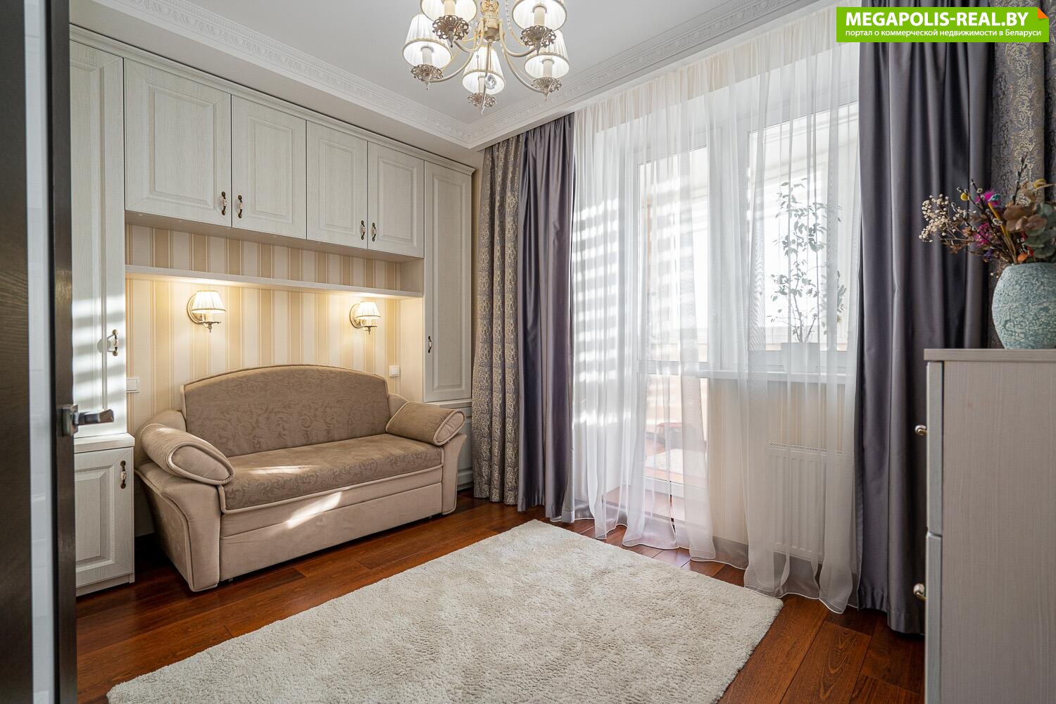 Элегантность и качество: Квартира выполнена в классическом стиле с использованием только высококачественных материалов, создавая атмосферу уюта и изысканности.