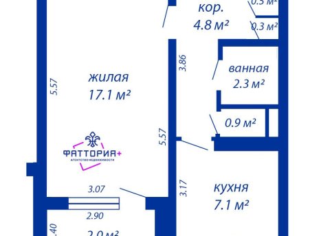 - Количество комнат: трехкомнатная